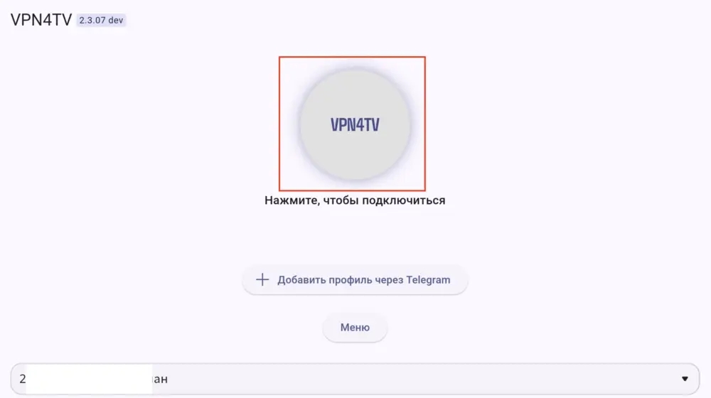 Вернитесь к телевизору и нажмите большую круглую кнопку в центре экрана приложения VPN4TV для активации VPN